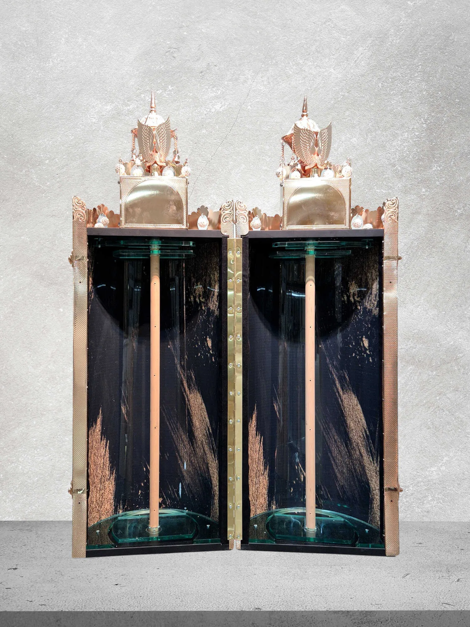 הכרובים מגולפים בקפדנות ומוסיפים ממד עמוק של קדושה ויוקרה.