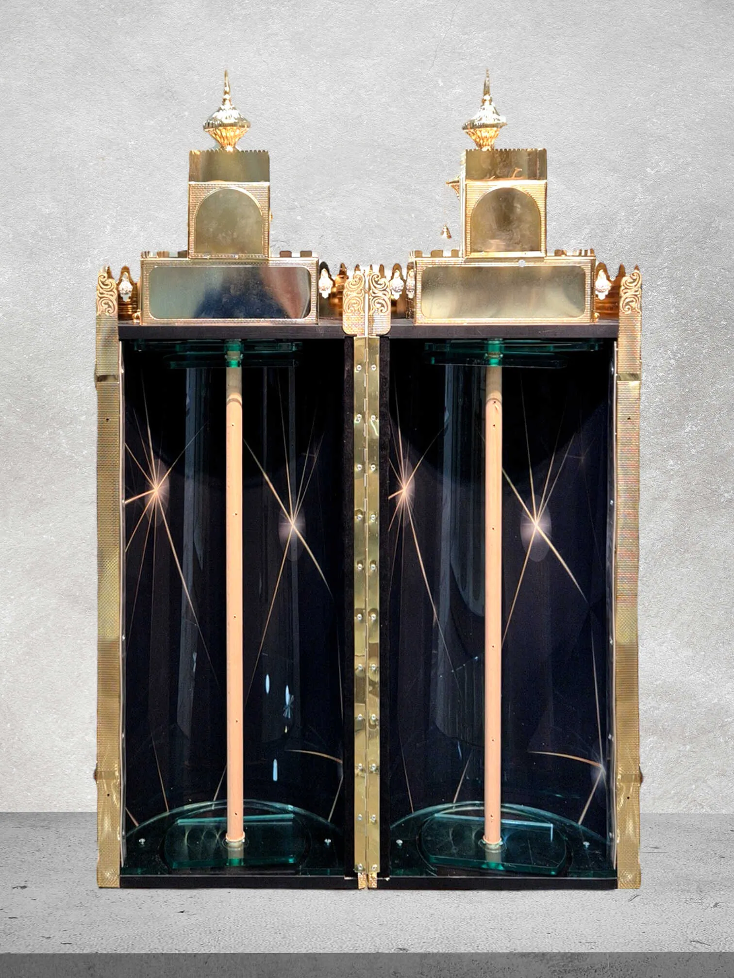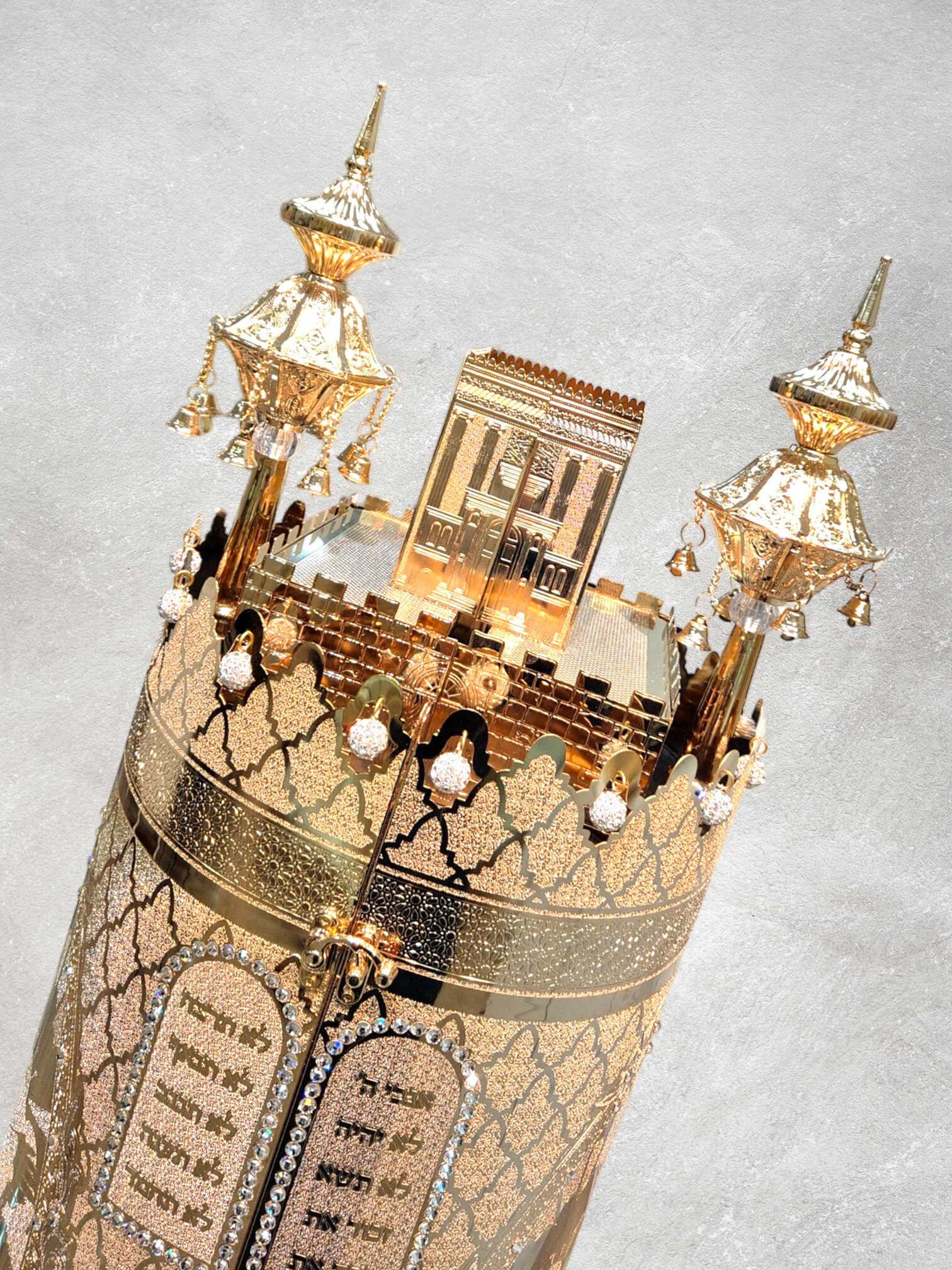 תיק לספר תורה בציפוי זהב טהור, מעוצב בהשראת השיר "אעופה אשכונה" של רבי יצחק אבוחצירא.